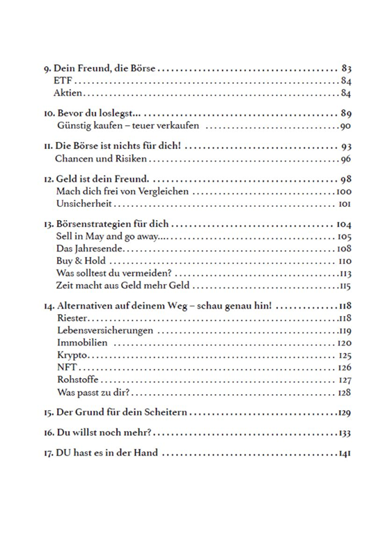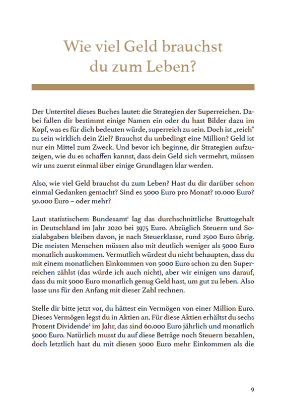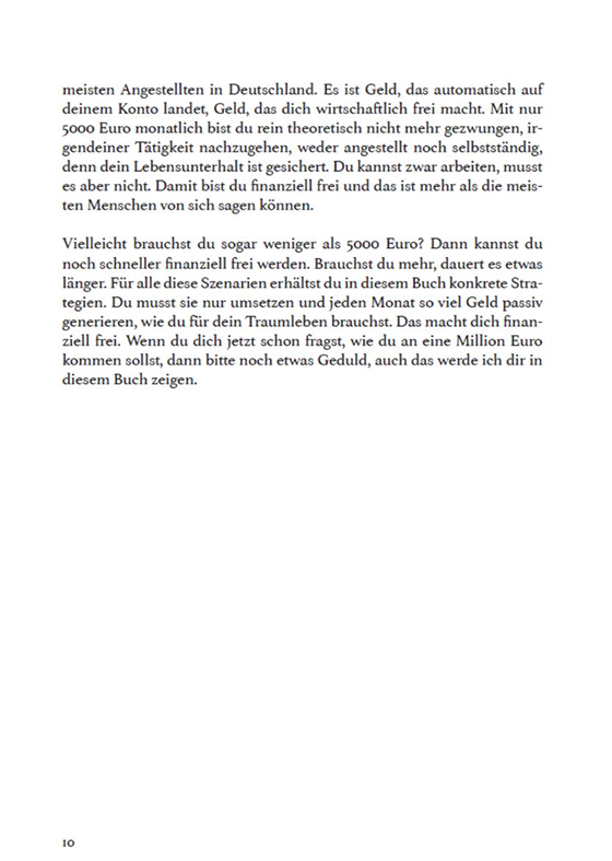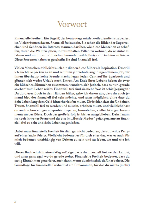 Die Strategien in diesem Buch werden Dir weiterhelfen, egal, wo Du stehst. Unabhängig davon, ob Du schon 500.000 Euro hast oder mit 50 Euro pro Monat anfangen möchtest zu investieren. Wichtig ist nicht, wie viel Geld Du auf der Seite hast. Wichtig ist, dass Du anfängst – und zwar hier und jetzt.
